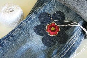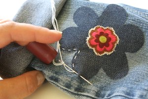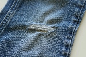 Have holes in your jeans? Give those old jeans some new life with just a bit of sewing.