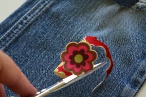 - Now you can iron the whole thing over the hole in your jeans.