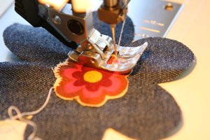 - Stitch your embellishment onto your cut patch using a blanket stitch or a zigzag.